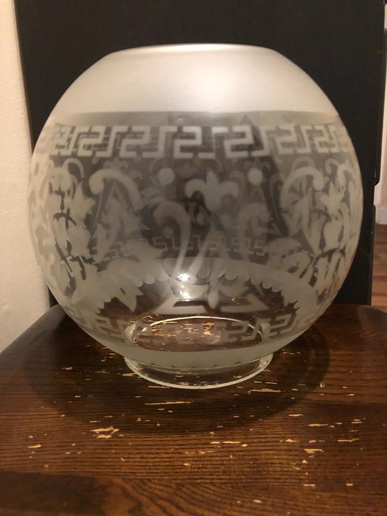Vintage engraved clear glass oil lamp globe / shade - 4"